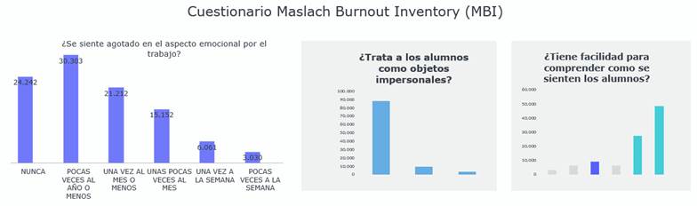 Para la recopilación de datos, se aplicó la técnica de la encuesta, basada en la implementación de los cuestionarios de: Maslach Burnout Inventory (MBI), que consta de 22 ítems en forma de afirmaciones relacionadas con los sentimientos y actitudes de los profesionales en su entorno laboral (Tabla 1). El MBI es reconocido como una herramienta para evaluar el síndrome de burnout y se divide en tres subescalas: agotamiento emocional, despersonalización y realización personal (Manzano, 2020).
