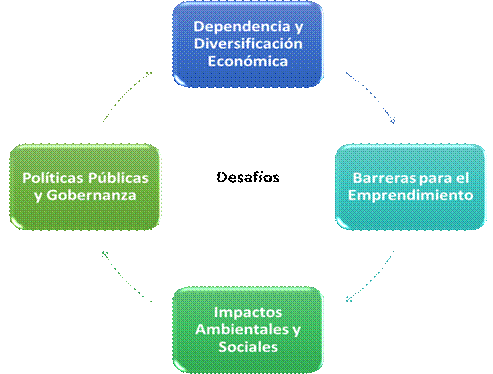 Las industrias extractivas, como la minería y el petróleo, generan un entorno económico favorable para ciertos tipos de emprendimientos, principalmente aquellos relacionados con la cadena de suministro y servicios especializados. Siendo su impacto ambivalente. Aunque crean oportunidades para algunos sectores, la dependencia regional en estos recursos tiende a generar economías mono-especializadas, limitando la diversificación económica. Esto inhibe la creación de empresas en sectores no relacionados, como las industrias creativas o tecnológicas, lo que contribuye a la vulnerabilidad económica de las regiones ante fluctuaciones en los mercados globales.