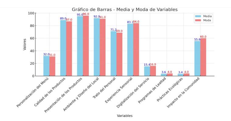 Los resultados del diagnóstico de satisfacción del cliente muestran que las innovaciones relacionadas con el ambiente y el diseño del local, la calidad y la presentación de los productos son altamente valorados, esto sugiere que la experiencia sensorial y la estética del lugar juegan un papel fundamental en la satisfacción de los clientes. Resultados similares se encontraron en los estudios de Alilja Acuña (2022) y Echenique Mogroviejo (2019). Sin embargo, en concordancia con el estudio de Poveda Anchundia & Morocho Valarezo (2023) las innovaciones como la digitalización del servicio y los programas de lealtad y recompensas no han sido implementadas adecuadamente, lo que afecta los resultados a largo plazo de las instalaciones objeto de estudio.