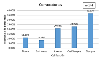 Figura 6. Análisis de la dimensión convocatorias.