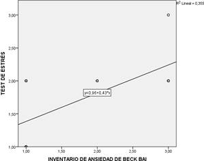 Posterior a la recolección de la información, los hallazgos determinaron que los factores de riesgos que ocasionan el estrés y que se asocian con la ansiedad y depresión que se determinaron mediante la regresión-correlación lineal, entre los datos de X y los de Y con una ecuación que permita relacionar de manera aproximada ambas variables. Esto es de especial interés cuando una de las variables puede medirse de manera sencilla, pero otra no. Efectivamente, si entre ambas existe un alto grado de correlación, el valor de la primera puede utilizarse para pronosticar con mayor o menor fiabilidad que el de la segunda (Montanero y Minuesa, 2018).