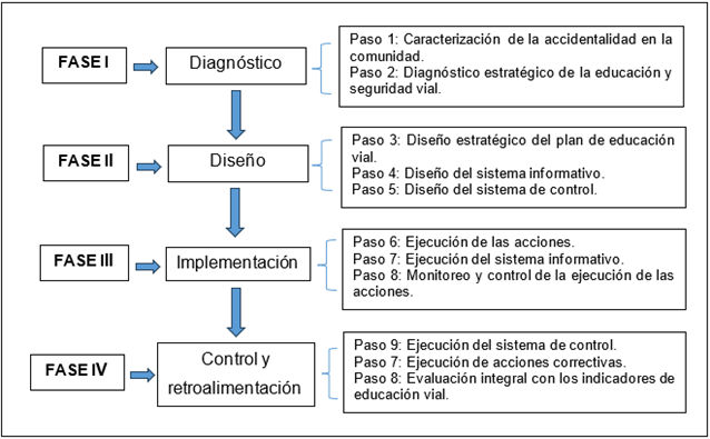 Figura 1. Metodología para implementar la estrategia del programa de educación vial.
