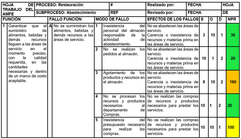 Figura 1. Levantamiento de riesgos en el subproceso de Abastecimiento, a través de la Hoja de Trabajo del AMFE.
