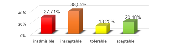 Figura 2. Distribución de los niveles de riesgo en el proceso de A+B en el hotel.