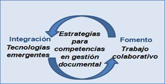 Según la figura 7, es menester la implementación de estrategias formativas continuas que incorporen tecnologías emergentes en el proceso de aprendizaje y, a su vez, fomenten el trabajo colaborativo, contribuyendo así a la mejora de la gestión documental en las organizaciones (Das et al., 2022; Peñalver & Isea, 2024; Tapia & Recalde, 2024; Gamido et al., 2023; Xu, Wang & Wang, 2023)