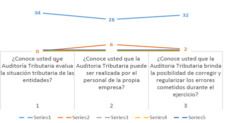 Asimismo, la mayoría de los encuestados indicó conocer que la Auditoría Tributaria puede ser aplicada de forma voluntaria, ya que las empresas tienen la posibilidad de contratar auditores externos. Esta percepción concuerda con Yucailla (2022), quien afirma que la auditoría tributaria es un servicio profesional desarrollado por un equipo multidisciplinario que analiza la situación fiscal de la empresa, revisa documentación y detecta evidencias que permiten verificar el cumplimiento de las normas tributarias.
