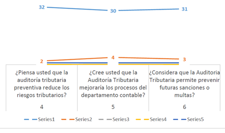 Con base en los resultados de las encuestas, también se identificó que los participantes consideran que la Auditoría Tributaria ayuda a reducir el riesgo fiscal, ya que permite prevenir sanciones y multas. Esto se alinea con Herrera (2023), quien indica que este examen permite comprobar la veracidad de la información contable presentada ante la administración tributaria, verificando la correcta aplicación de las conciliaciones tributarias y el cumplimiento de las obligaciones fiscales mediante buenas prácticas contables.