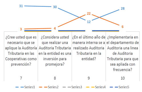 Los resultados obtenidos a través de las encuestas revelan que la mayoría de los gerentes financieros consideran esta auditoría como un mecanismo preventivo, correctivo y de mejora continua. Además, existe una disposición favorable para implementarla, ya sea mediante recursos internos o con el apoyo de profesionales externos. Esta visión posiciona a la Auditoría Tributaria como una inversión clave que contribuye a la eficiencia contable, al fortalecimiento de la gestión tributaria y al desarrollo institucional de las cooperativas.