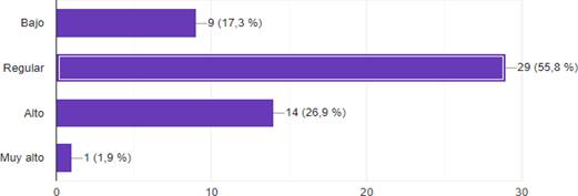 El 55,8% tienen conocimientos regulares de las obligaciones tributarias, el 26,9% alto mientras que el 17,3% bajo y 1,9% muy alto.