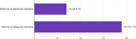 El 73,1% de los encuestados al sector manufacturero considera que una forma de disminuir la conducta evasora es informar la obligación tributaria, mientras que el 26,9% considera que se debería reformar la legislación tributaria.