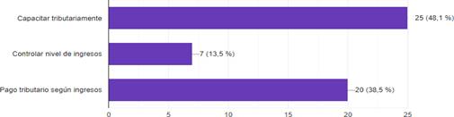 Los encuestados del sector manufacturero indican que el 48,1% generaría un mayor cumplimiento tributario existiendo capacitaciones constantes, el 38,5 el pago de tributos mediante ingresos y el 13,5 controlando el nivel de ingresos.