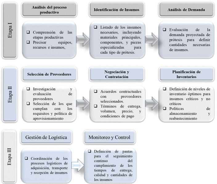 Lo anterior constituye la situación problemática que da pie al planteamiento central de esta investigación. La manera actual en que se adquieren los insumos para la fabricación de prótesis transtibiales y transradiales no está sujeta a un procedimiento estandarizado, lo que compromete la sostenibilidad operativa y la capacidad de las empresas para cumplir con los requerimientos de calidad y oportunidad que exigen los usuarios. La reorganización productiva que están emprendiendo estos fabricantes para expandir su producción hace imperante la necesidad de un enfoque planificado que garantice el flujo continuo de materiales especializados. Investigaciones previas, como la de Pham et al. (2023), respaldan que la falta de insumos en momentos críticos puede forzar decisiones que comprometen la calidad final del producto. En este sentido, el presente artículo tiene como objetivo general diseñar un procedimiento que permite establecer un plan de aprovisionamiento basado en la previsión de la demanda futura para el proceso productivo de prótesis híbridas para extremidades superiores e inferiores, que contribuya a optimizar los procesos logísticos y productivos.