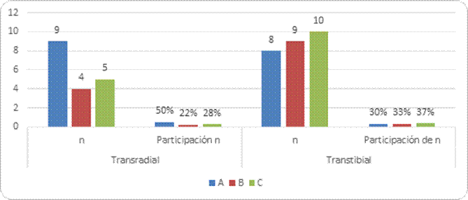 El proceso de la prótesis transtibial también está compuesto por tres fases: la de captura de medidas, encargada de asegurar la simetría de la prótesis con la pierna sana del paciente; la de desarrollo del socket, pieza clave para garantizar la unión del muñón con la prótesis; y la etapa de ensamblaje, donde se realiza el montaje de todos los componentes. De igual manera, mediante observación, la consulta a personal técnico, y revisión de catálogos, se identificaron las especificaciones de cada actividad y tarea del proceso de fabricación de las prótesis híbridas, y con ello los insumos necesarios.