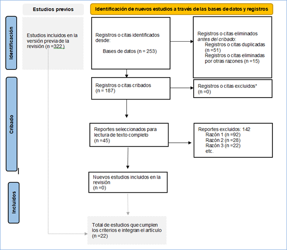 Se disponía previamente de 322 estudios sobre la temática, a lo largo de las cuatro fases: