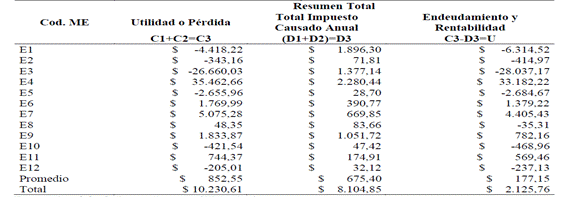 Para complementar la selección de la muestra, y con el objetivo de determinar el impacto de este impuesto en los microempresarios, se eligieron aquellas microempresas más representativas que cumplieran con criterios específicos de inclusión. Estos criterios fueron: estar constituidas desde el año 2020, registrar ingresos inferiores a $300.000, contar con más de 9 empleados y pertenecer al sector comercial. Con base en estos parámetros, se identificaron 12 microempresas representativas que servirán como unidad de análisis detallada para evaluar el efecto del régimen impositivo sobre su desempeño económico y financiero.