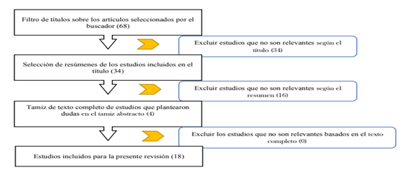 La primera búsqueda se realizó en Scopus y posteriormente en WoS, siguiendo los parámetros propuestos por Tranfield et al. (2003). El conocimiento obtenido generó un volumen considerable de estudios, por lo que se aplicó un sistema de filtrado electrónico.