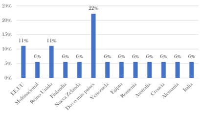 Figura 3. Porcentaje de artículos en cada categoría de la variable país.