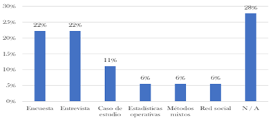 Figura 5. Porcentaje de artículos en cada categoría de método de recogida de datos.