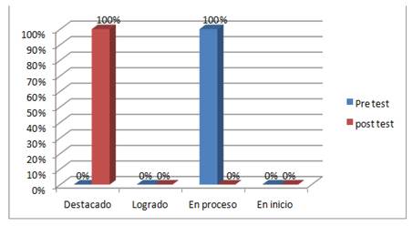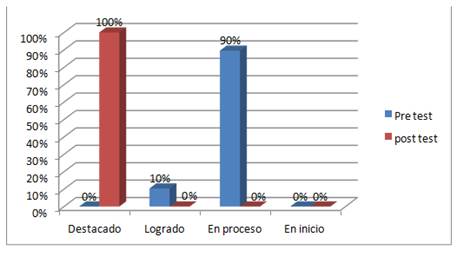 Al obtener un puntaje estimado de los datos, estos se distribuyeron en niveles, tomando en cuenta la distribución baremo, el cual favoreció una exploración de forma metódica de los resultados, cuya finalidad fue la estructuración para elaborar conexiones de la información procesada (León et al., 2015). Para ser más específicos, se mostrarán los resultados del grupo experimental y se hará una síntesis de los resultados del grupo control, a fin de enfatizar la efectividad de la estrategia aplicada.