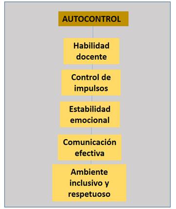 En la figura 2, se muestra la categoría relacionada con el autocontrol, el cual, según las opiniones de los informantes, describen que los docentes deben tener la capacidad de autocontrolarse, manejando adecuadamente sus emociones, a fin de propiciar una comunicación efectiva que promueva un ambiente inclusivo y respetuoso de todas las culturas.