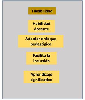 La figura 7 indica que el docente debe adaptar sus enfoques pedagógicos a las necesidades culturales y emocionales de los alumnos, facilitando la inclusión y el bien común en pro del alcance de un aprendizaje significativo dentro de un entorno equitativo.