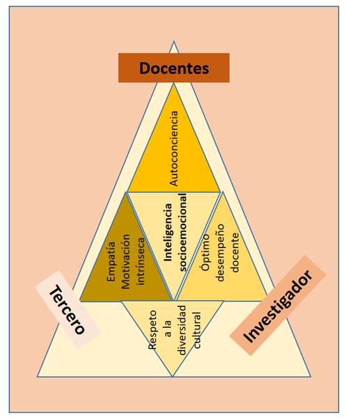 En la figura se muestra la triangulación donde emergieron aspectos que giraron en torno en la inteligencia socioemocional, los cuales estuvieron sustentados en la opinión de los docentes informantes clave, la investigadora y un colega, destacando factores derivados como: la empatía, la motivación intrínseca, la autoconciencia el óptimo desempeño docente y el respeto a la diversidad cultural. Estos aspectos permitieron enriquecer el tema abordado en este estudio.
