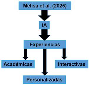 En la figura 3, Melisa et al. (2025) manifiestan que la IA ha llegado a ser una herramienta que genera experiencias académicas de aprendizaje personalizado e interactivo.